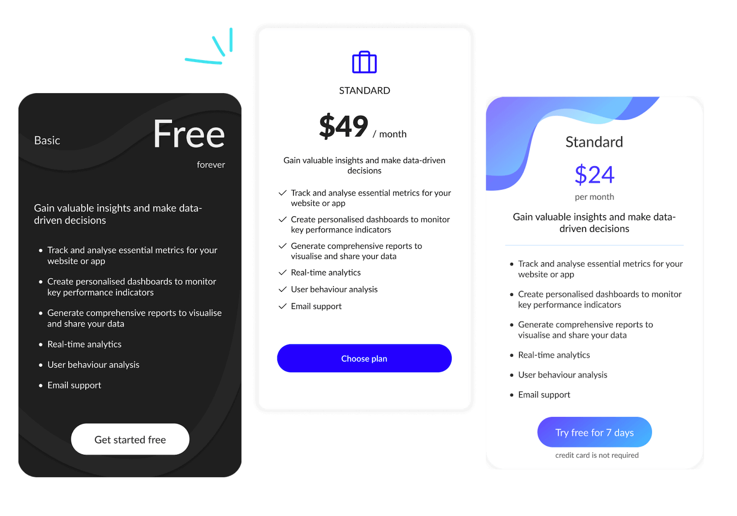 Grab your users' attention with a plan comparison feature that showcases the unique benefits of each plan.